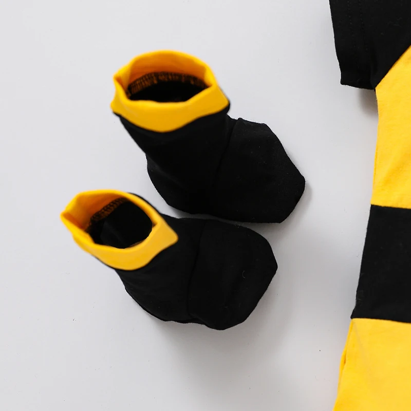 Newborn Baby Bee Costume, Short Sleeve Honeybee Romper + Hat + Wings + Socks Set